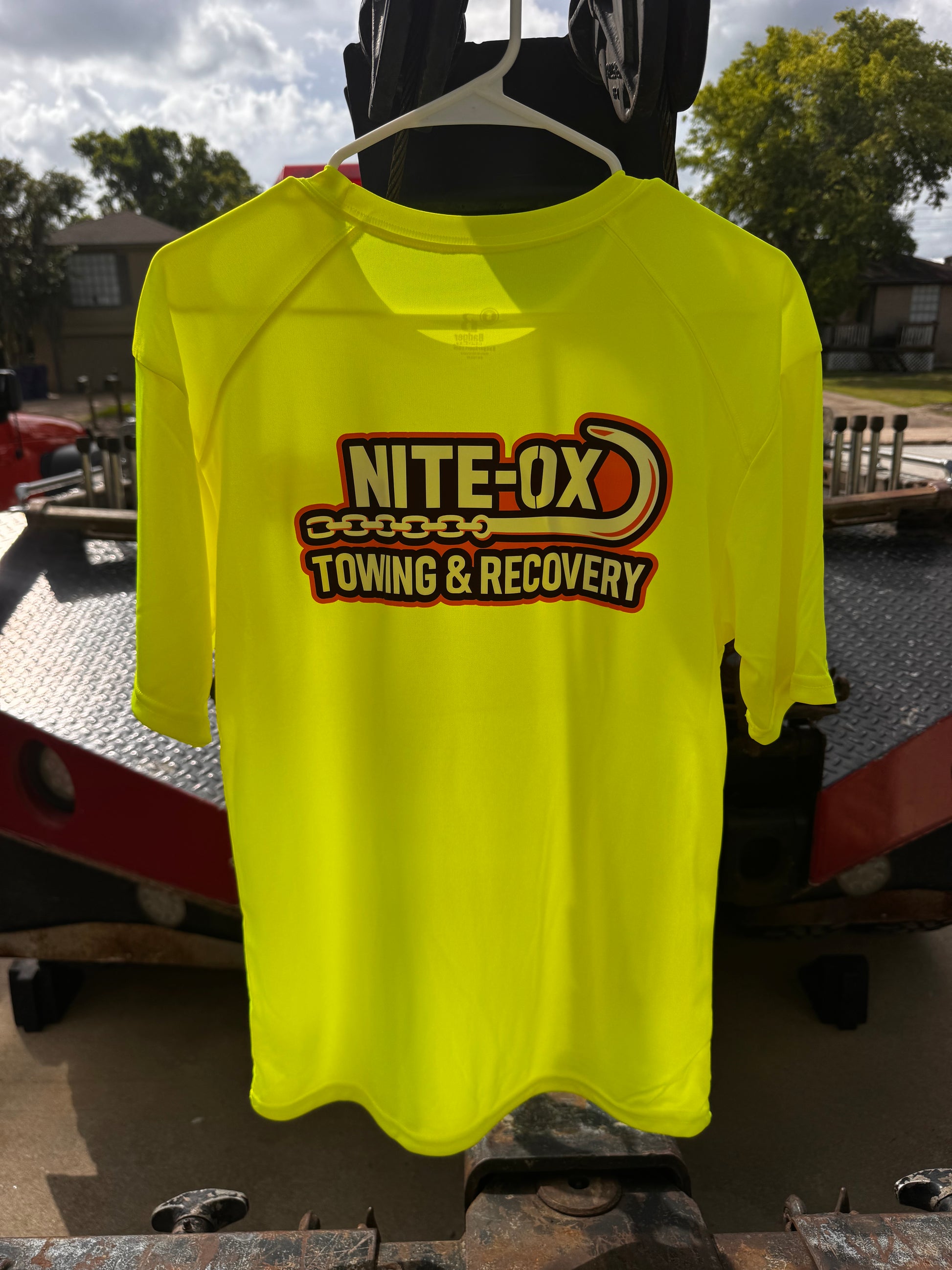Brighten your day with the Nite Ox Towing Badger B-Core T Shirt in lively lime green. Crafted for comfort and durability, this shirt keeps you feeling fresh whether you're on the clock or off-duty. Its bold color and soft fabric make it a fun and functional addition to your wardrobe—perfect for showing off your towing team spirit with a playful twist!