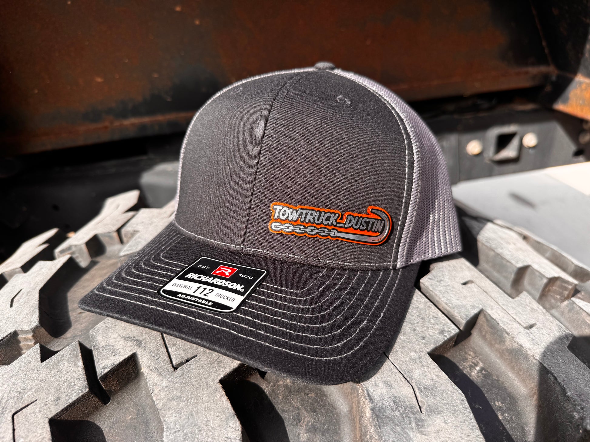 Show off your tow truck pride with the Tow Truck Dustin Charcoal/Black Richardson 112 Trucker Hat. This stylish cap combines a sleek charcoal front with a classic black mesh back for breathable comfort. Perfect for sunny days on the road or casual outings, it’s a fun way to keep cool while celebrating your favorite ride.