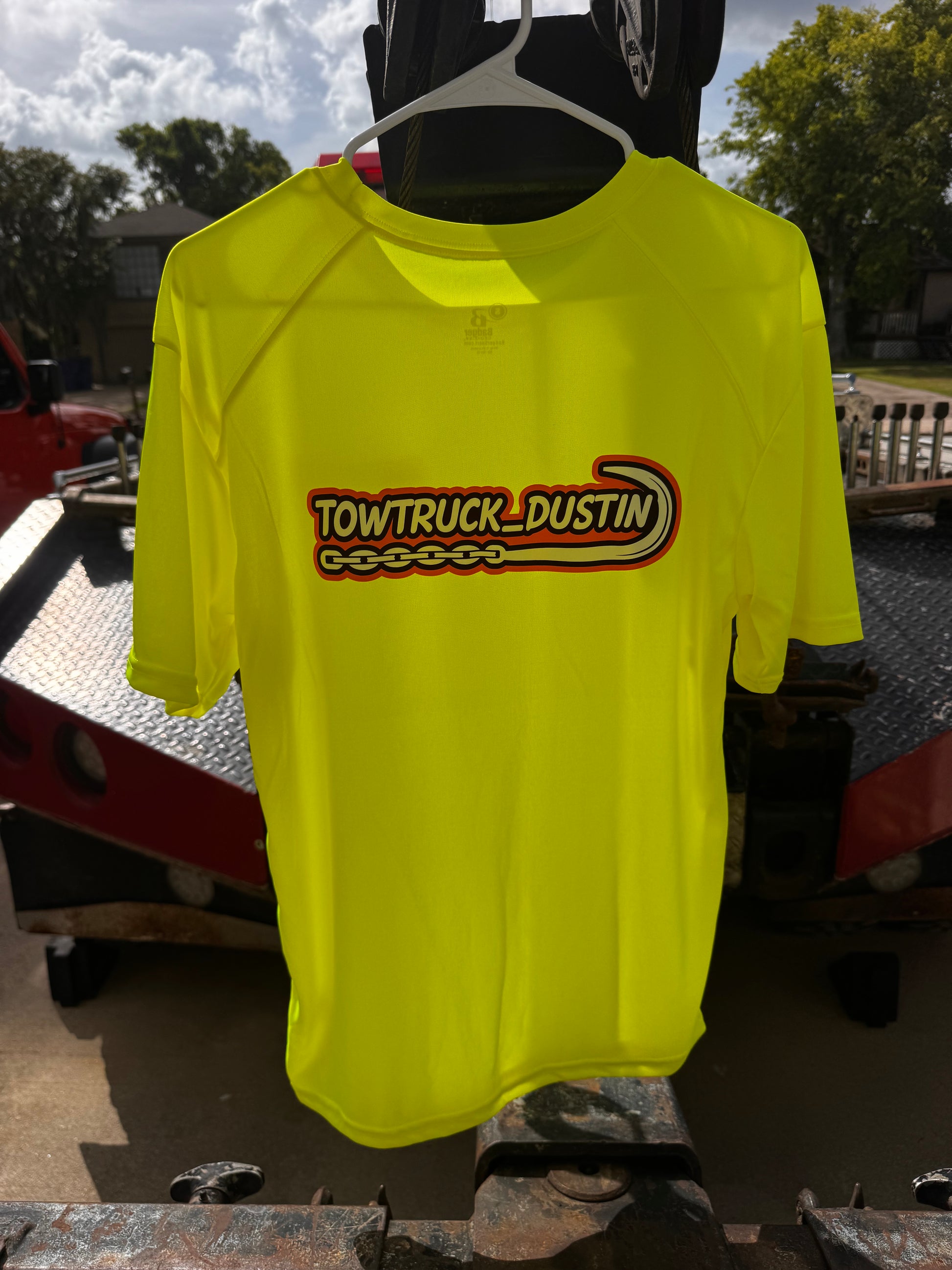 Get ready to turn heads with the Tow Truck Dustin Medium Badger B-Core T Shirt in bright lime green! Made for comfort and built to last, this tee brings a splash of fun to your everyday wear. Whether you're towing or just chilling, its soft fabric and bold color make it the perfect pick for adding some playful energy to your outfit.